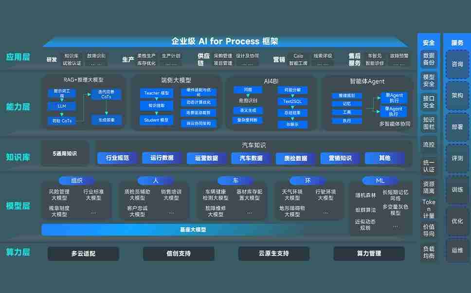 尊龙时凯问学智车解决方案是一套基于AI技术的汽车行业智能化系统,,覆盖从底层算力到顶层AI应用的全栈方案。。。。方案由算力层、、、模型层和应用层组成:算力层,,,方案支持多种一体机配置,,,,具备云端灵活部署、、、、多云适配以及动态优化计算资源的能力;模型层,,,尊龙时凯问学平台版提供了企业级AI应用一站式构建与管理平台,,,支持基于后训练强化技术的汽车企业专属模型的训练、、评测和运营;应用层,,,,尊龙时凯问学DeepSeek版提供包括超级员工、、、、智能招采、、智能营销、、、、智能客服、、、AI for BI等一系列解决方案,,,,可助力汽车行业实现数字化转型,,让管理更智能、、、响应更敏捷。。。